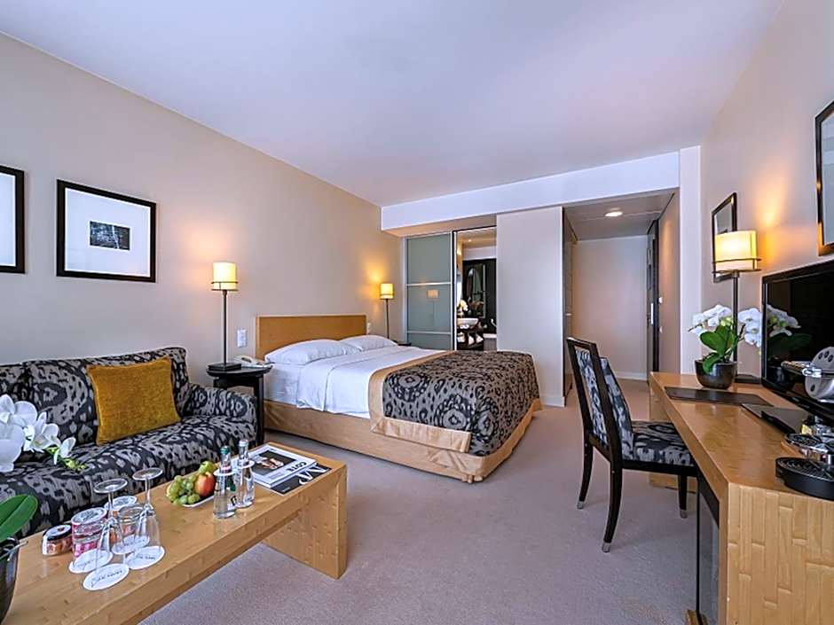 EXECUTIVE DOUBLE is 291 square feet and includes a queen-size bed 150-154 width plus living room.